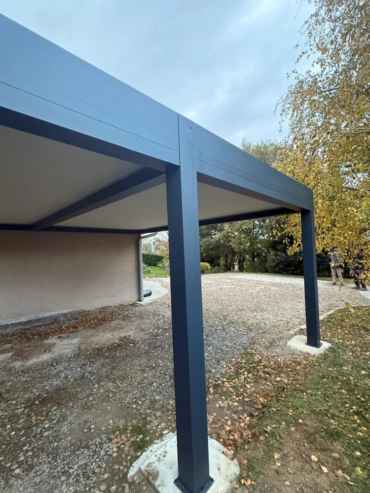 Installation d'un carport en aluminium, pour tous les budgets. MMI Pergola, le partenaire de votre développement.